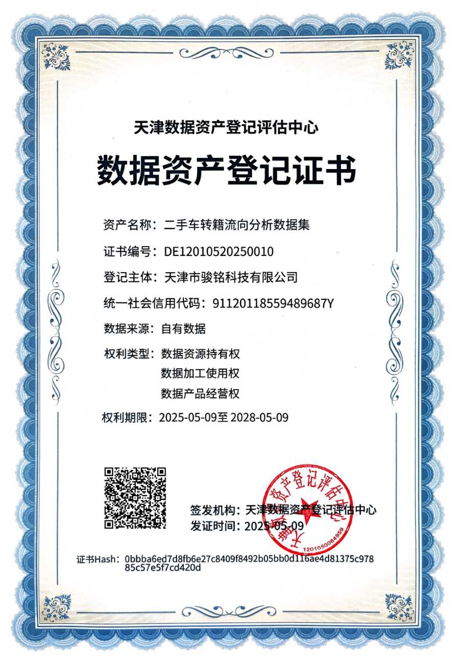 数据资产登记证书