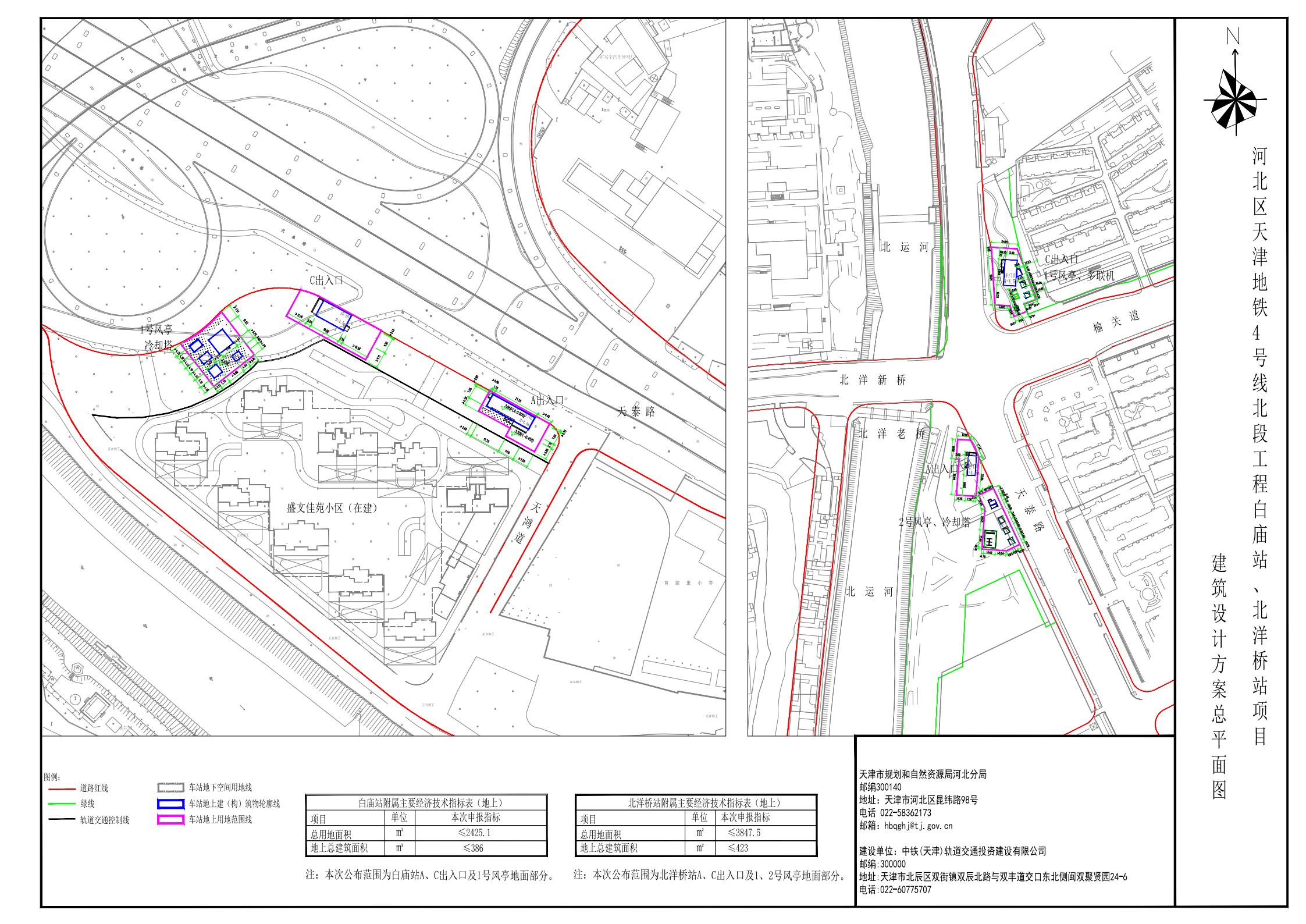 依据《中华人民共和国城乡规划法》的有关要求,现将关于天津地铁4号线北段工程白庙站、北洋桥站附属地上部分建筑设计方案总平面图进行公布,公布期限为信息发布之日起至建设项目规划验收合格为止。